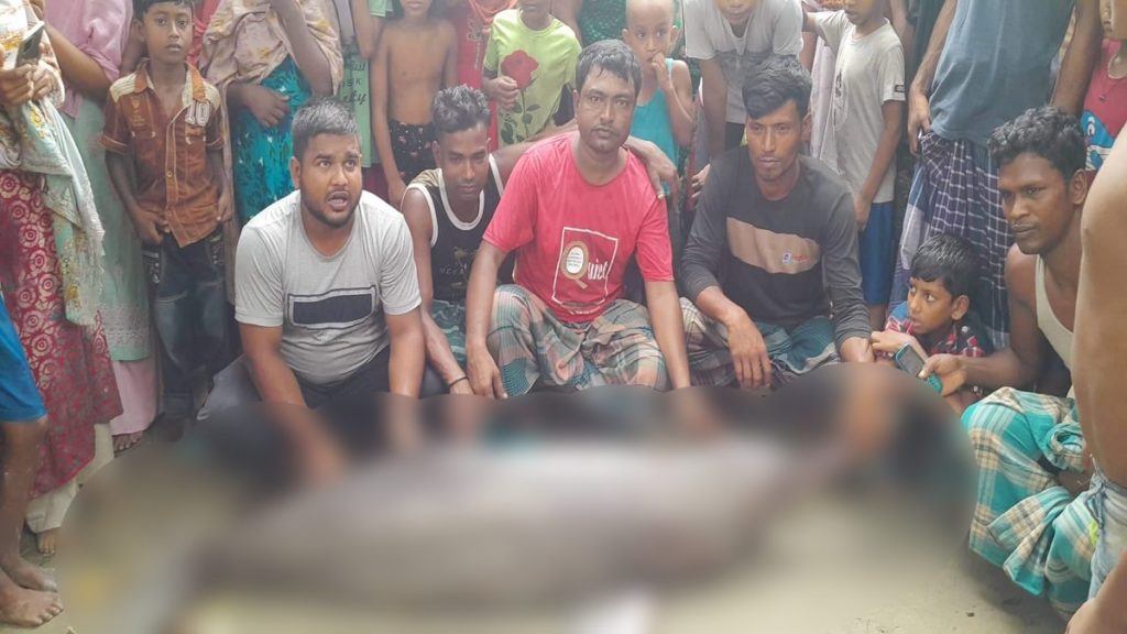 এলাকাবাসী জানান, রোববার ভোরে উপজেলার সহবতপুর ইউনিয়নের জাঙ্গালিয়া এলাকায় ধলেশ্বরী নদীতে সেন্টু বোয়াল মাছ ধরার বরশি (জিয়ালা বরশি) ফেলে আসে। বরশি ফেলার পর ছোট একটি বোয়াল মাছ বরশিতে আটকে গেলে ওই যুবক মাছটি খুলে আনার জন্য উদ্যত হয়। এ সময় আকস্মিকভাবে বিশাল আকৃতির শুশুকটি বরশিতে আটকে যাওয়া বোয়াল মাছকে গিলতে গিয়ে আটকে যায়। পরে সেন্টু প্রাণীটি দেখে ভয় পেয়ে চিৎকার করতে থাকে। এ সময় তার চিৎকার শুনে নদী পাড়ের লোকজন ঘটনাস্থলে ছুটে এসে শুশুকটি ডাঙ্গায় তুলে আনে। এরপর সামুদ্রিক শুশুকটি স্থানীয় জাঙ্গালীয় বাজারে নেয়া হয়। মুহূর্তের মধ্যে এ খবর ছড়িয়ে পড়লে আশপাশের লোকজনসহ দূর-দূরান্ত থেকে হাজারো মানুষ শুশুকটিকে দেখতে সেখানে ভিড় জমায়।