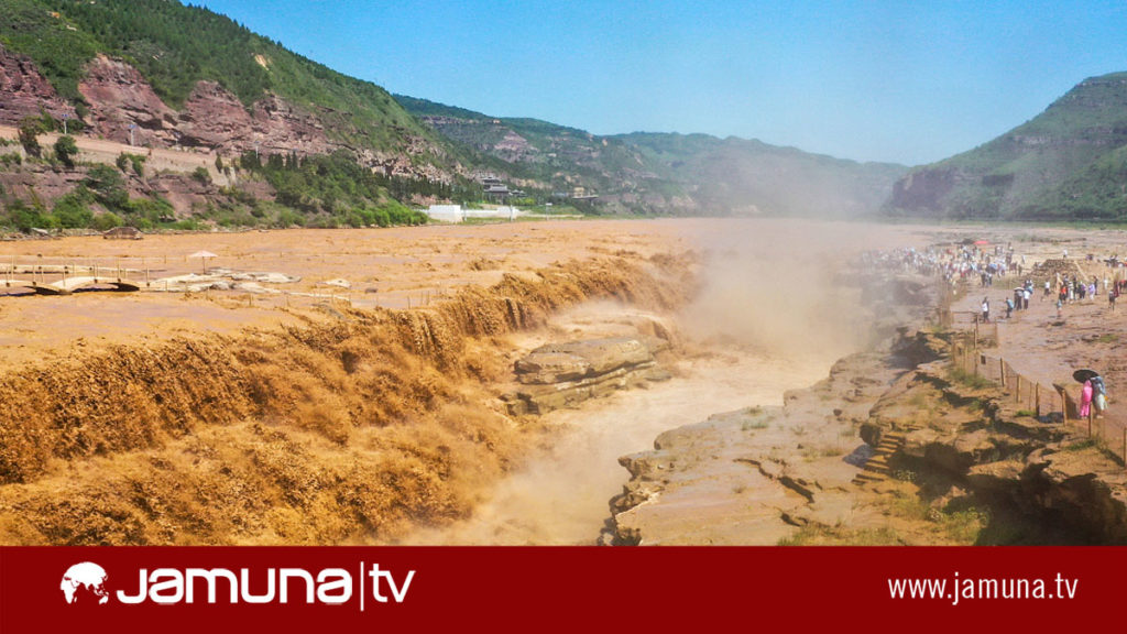 এদিকে, ভারী বৃষ্টিপাতের ফলে উত্তর চীনের শানসি প্রদেশের লিনফেন শহরে অবস্থিত ‘ইয়োলো রিভার’ বা হলুদ নদীর মাঝখানে অবস্থিত হুকু জলপ্রপাত ভয়াবহ আকার ধারণ করেছে। পানির চাপ বাড়ায় জলপ্রপাতটি কয়েকশ’ মিটার প্রসারিত হয়ে গেছে। এই দৃশ্য দেখতে সেখানে জড়ো হচ্ছে বিপুল সংখ্যক মানুষ।