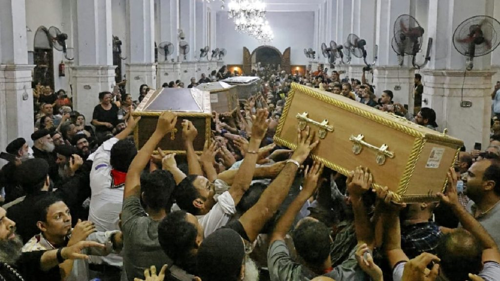 অনুষ্ঠিত হলো মিসরের কপটিক গির্জায় অগ্নিকাণ্ড ও পদদলিত হয়ে প্রাণ হারানো ৪১ হতভাগ্যের অন্ত্যেষ্টিক্রিয়া। রোববারের (১৪ আগস্ট) দুর্ঘটনায় নিহতদের ১৮ জনই শিশু।