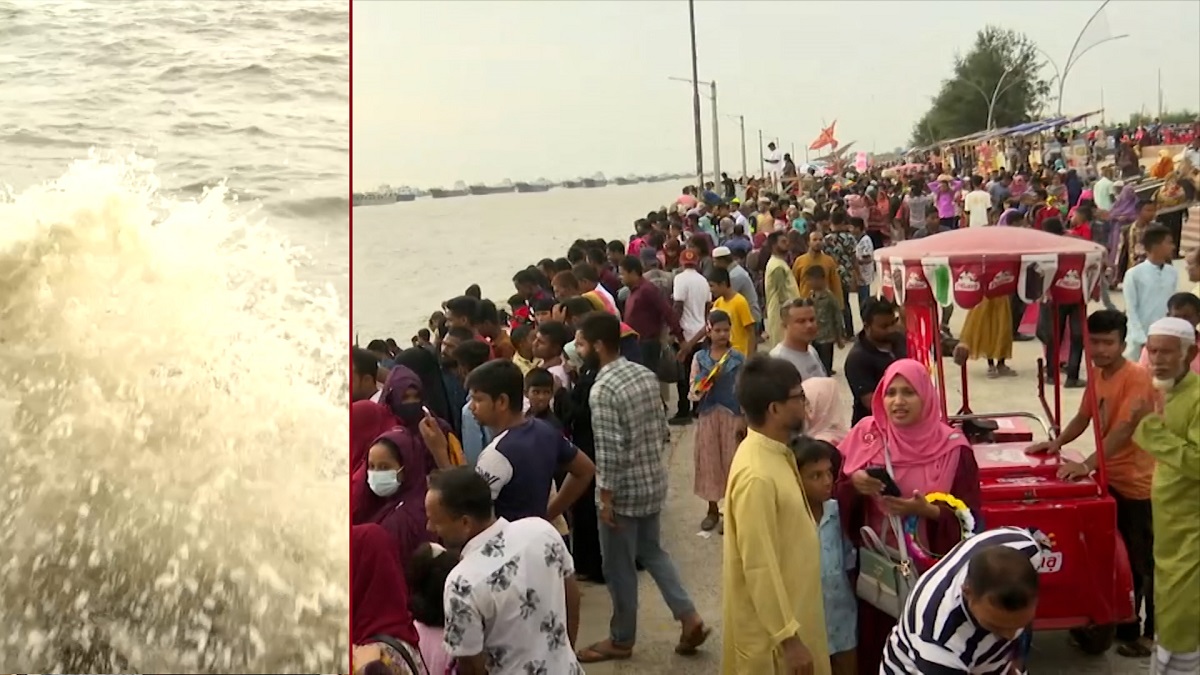 উত্তাল সমুদ্রে চলছে সর্তকতা, তাই দেখতে সৈকতে পর্যটকের ভিড়