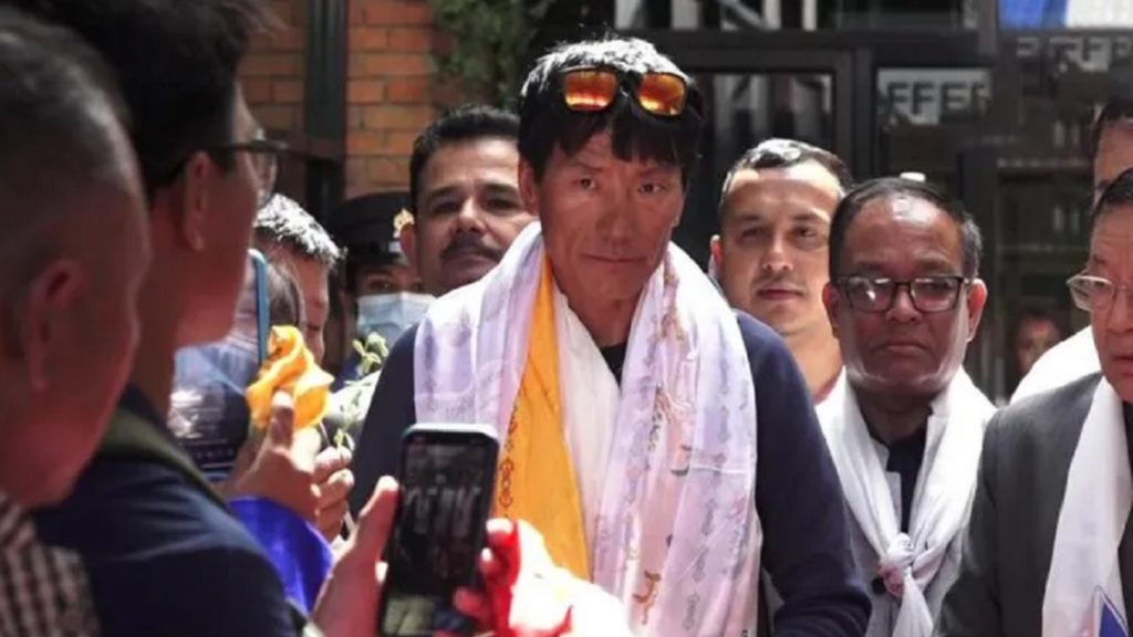 অনন্য রেকর্ড গড়ে দেশে ফিরলেন নেপালের শেরপা সানু। দ্বিতীয়বারের মতো বিশ্বের ১৪টি সর্বোচ্চ শৃঙ্গে আরোহণ করেছেন তিনি। পর্বাতারোহণের মাইলস্টোন তৈরি করে পাকিস্তান থেকে নেপালে নিজের বাসস্থানে ফিরেছেন তিনি। তাকে সেখানে দেয়া হয়েছেন অভ্যর্থনা।