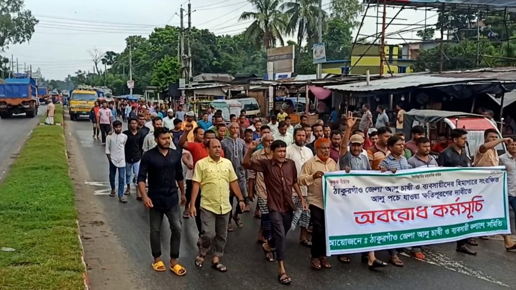 হিমাগারে রাখা সংরক্ষিত পঁচা আলুর ক্ষতিপূরণ ও ভাড়া কমানোর দাবিতে গত প্রায় চার মাস ধরে আন্দোলন করছে ঠাকুরগাঁওয়ের আলুচাষী ও ব্যবসায়ীরা। মানববন্ধন, প্রতিবাদ সভা ও মহাসড়ক অবরোধসহ বিভিন্ন কর্মসূচি পালন করে আসলেও কোনোপক্ষের সহায়তা মিলছে না। হিমাগার মালিক সমিতি বলছে, কৃষকদের জিম্মি করে একটি মহল এ আন্দোলন করছে। আর দুই পক্ষকে সমাধানের পথে নেয়ার চেষ্টা চলছে বলে জানিয়েছে জেলা প্রশাসন।