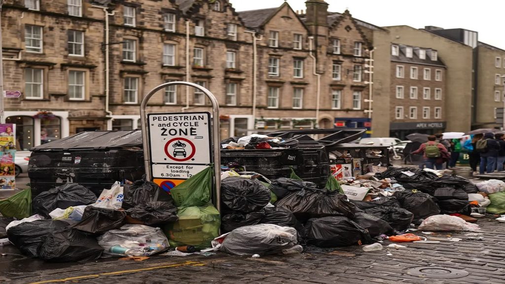 পরিচ্ছন্নতাকর্মীদের সপ্তাহপব্যাপী কর্মবিরতির জেরে ময়লার ভাগাড়ে পরিণত হয়েছে স্কটল্যান্ডের পথঘাট।