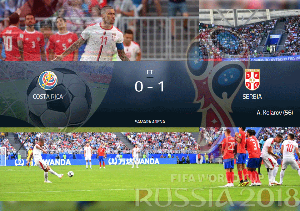 ফি্র-কিক থেকে অসাধারণ এক গোল করে বিশ্বকাপে সার্বিয়াকে শুভ সূচনা এনে দিলেন আলেক্সান্দার কোলারভ। ই-গ্রুপে নিজেদের প্রথম ম্যাচে আধিপত্য বিস্তার করে খেলেছে সার্বিয়া। অন্যদিকে, নাভাসের মতো বিশ্ব মাপের গোলরক্ষক আর দুর্দান্ত রক্ষণভাগে স্বস্তি কাজে লাগাতে পারেনি কোস্টারিকা। বারবারই সার্বিয়ার ডি-বক্সে গিয়ে খেই হারিয়েছে তাদের আক্রমণবাগ।