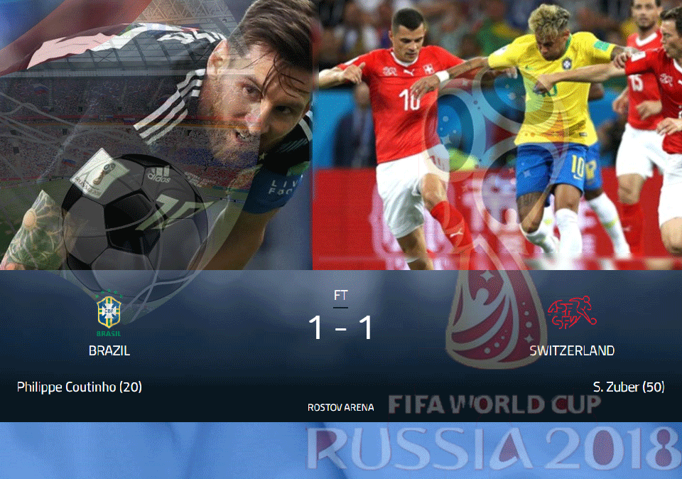 আর্জেন্টিনা এগিয়ে গিয়েও বেশিক্ষণ লিড ধরে রাখতে পারেনি। এরপর প্রতিপক্ষের ডি-বক্সে মরিয়া প্রচেষ্টা চালিয়েও কাজ হয়নি। উপরন্তু পেনাল্টি মিসের মাশুল দিয়ে একরাশ হতাশা নিয়ে মাঠ ছেড়েছিল। আর নিজেদের প্রথম ম্যাচে কুতিনহোর দেয়া গোলের লিড প্রথমার্ধজুড়েই ধরে রেখেছিল ব্রাজিল। খেলছিলও দারুণ কিন্তু ৫৫ মিনিটে সুইজারল্যান্ডের জুবেরের গোলে ধাক্কা খায় তারা। এর পর নানাভাবে চেষ্টা করেও আর লিড নিতে পারেনি ব্রাজিল।