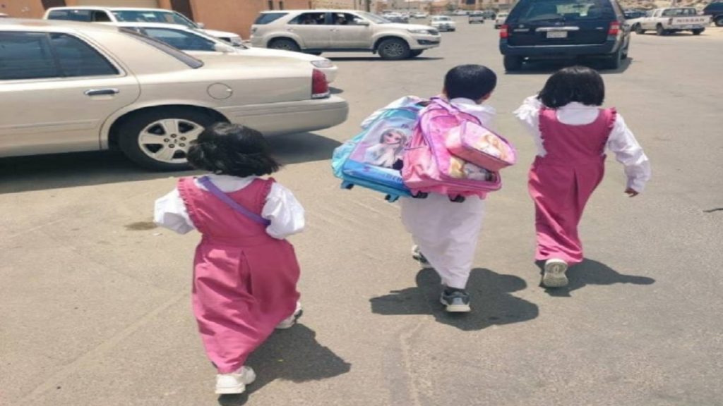 ছোট দুই বোনের স্কুলব্যাগ নিজের কাঁধে নিয়ে ঘটনার জন্ম দিয়েছে ৯ বছর বয়সী ছোট্ট এক সৌদি শিশু। সামাজিক যোগাযোগমাধ্যমে ইতোমধ্যে ভাইয়ের কাঁধে দুই বোনের ব্যাগ বহনের ওই দৃশ্যটি ভাইরাল হয়েছে।