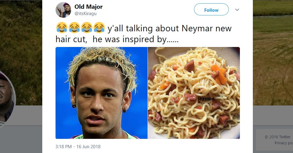 বাস্তবে যার কারণেই বা যে কারণেই এমন আকাবাঁকা স্বর্ণালি চুলে মুগ্ধ হয়ে থাকুন না কেন, টুইটার ব্যবহারকারীদের একাংশ মনে করেন নেইমার আসলে নুডলস থেকে অনুপ্রেরণা নিয়েছেন! এ নিয়ে ভক্ত-অনুরক্তরাও হাস্যরসে মেতেছেন। অনেকে নেইমারের হেয়ার কাটের সাথে নানা পদের নুডলসের ছবির তুলনা করে পোস্ট করছেন টুইটার-ফেসবুকে।