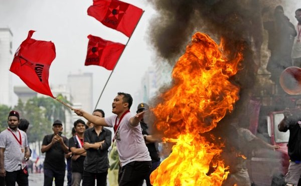 বিক্ষোভে উত্তাল ইন্দোনেশিয়ার রাজধানী জাকার্তা। জ্বালানি তেলের মূল্য বৃদ্ধির প্রতিবাদে সোমবার (১২ সেপ্টেম্বর) রাজপথে নামে হাজার হাজার মানুষ।