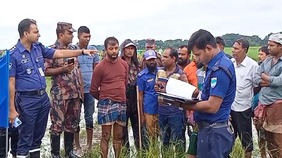 ঘটনাস্থলে পুলিশ সদস্য ও স্থানীয় গ্রামবাসীরা।