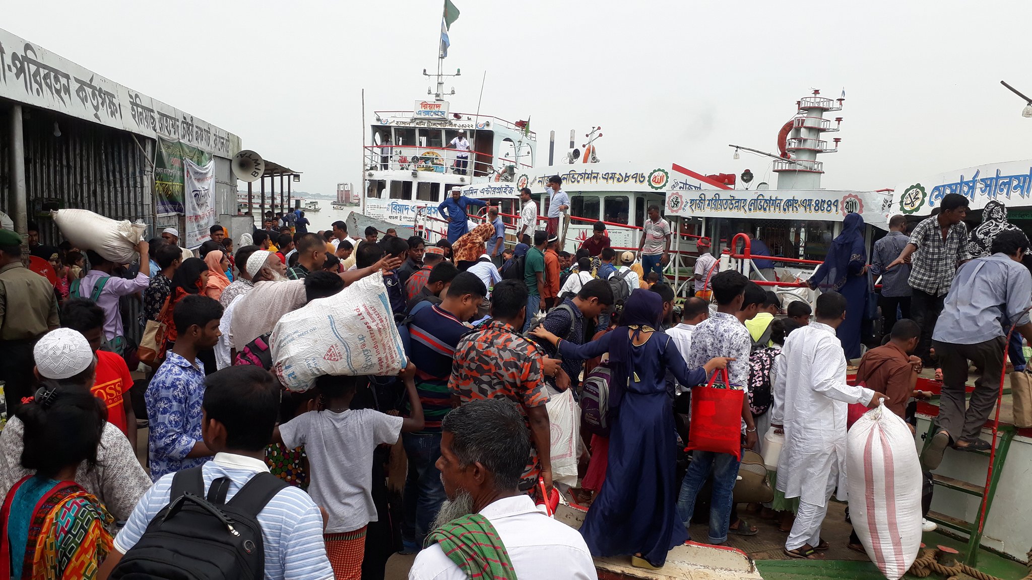 সকাল থেকেই কাঠালবাড়ি-শিমুলিয়া নৌরুট হয়ে কর্মমূখী যাত্রীদের উপচেপড়া ভিড়। ফেরিতে যানবাহনের সংকট থাকায় চাপ বেড়েছে লঞ্চ ও স্পিডবোটে। তবে এসব যানবাহনে যেতেও গুণতে হচ্ছে বাড়তি টাকা। যাত্রীদের নিরাপত্তায় ও ওভারলোড ঠেকাতে পুলিশ, বিআইডব্লিউটিএ, ফায়ার সার্ভিস, আনসার সদস্যরা যৌথভাবে কাজ করছে। বাড়তি ভাড়া আদায় করা হলে তাৎক্ষণিক ব্যবস্থা নেয়ার আশ্বাস তাদের।