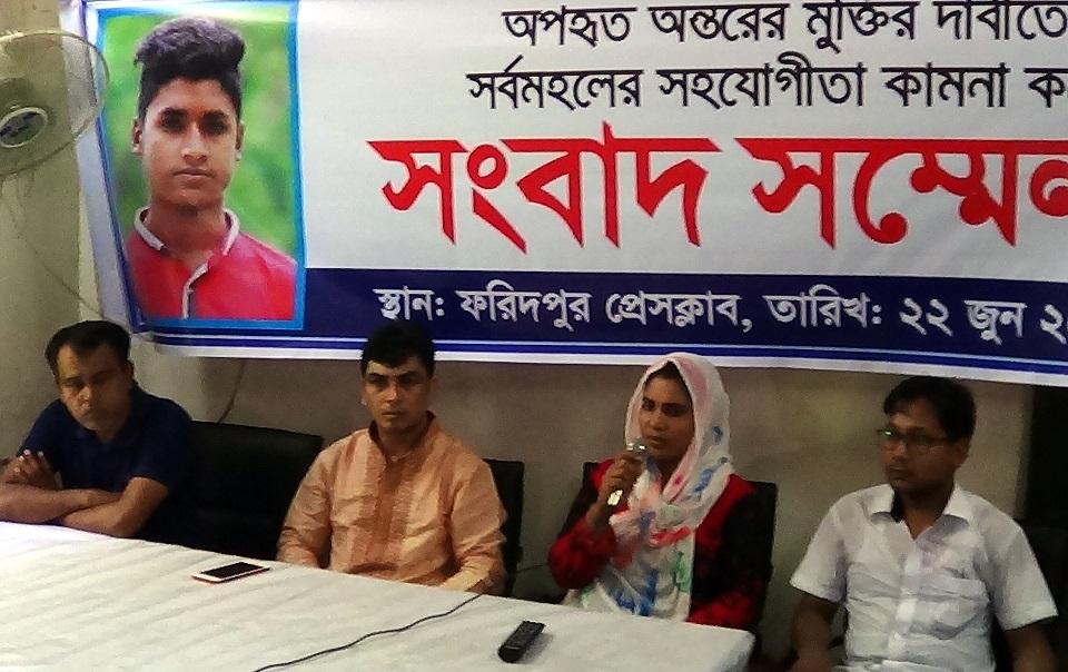 এরপরও ছেলের কোন সন্ধান না পেয়ে গত ১৫ জুন নগরকান্দা থানায় একটি অপহরণ মামলা করে অন্তরের পরিবার। একই সাথে ওই এলাকার রাজনৈতিক ব্যক্তি ও জনপ্রতিনিধিদের কাছে যায় পরিবারটি। সকলেই আশ্বাস দেয় ছেলেকে ফিরে পেতে সহায়তা করার। কিন্তু আজ পর্যন্ত ছেলের কোন সন্ধান না পেয়ে গণমাধ্যমের সহায়তা চান এই মা।