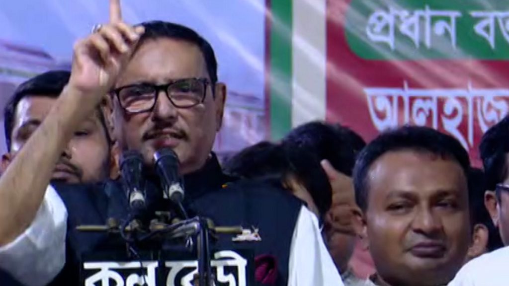 বন্দুকের নলের মুখে নয়, মাঠে ময়দানে আন্দোলন করে আওয়ামী লীগ ক্ষমতায় এসেছে বলে মন্তব্য করেছেন আওয়ামী লীগ সাধারণ সম্পাদক ওবায়দুল কাদের। বলেন, রাজনৈতিকভাবেই বিরোধী দলের রাজনীতিকে মোকাবেলা করা হবে। খেলা হবে, আন্দোলনে খেলা হবে, নির্বাচনে খেলা হবে।