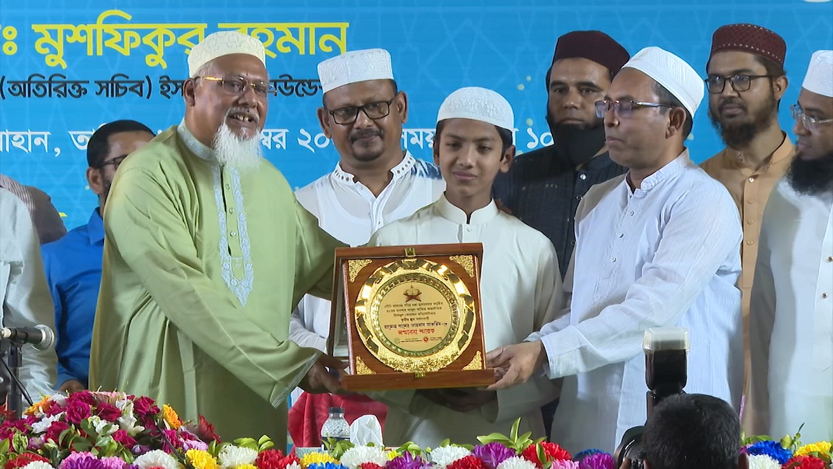 আন্তর্জাতিক হিফজুল কুরআন প্রতিযোগিতায় তৃতীয় স্থান অর্জনকারী হাফেজ সালেহ আহমাদ তাকরিমকে সংবর্ধনা দিয়েছে ধর্ম মন্ত্রণালয় ও ইসলামিক ফাউন্ডেশন। মঙ্গলবার (২৭ সেপ্টেম্বর) সকালে বায়তুল মোকাররম জাতীয় মসজিদের এ সংবর্ধনা দেয়া হয়।