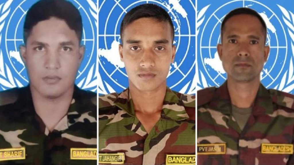 নিহত শান্তিরক্ষীরা হলেন সৈনিক জসিম উদ্দিন (বয়স: ৩১, গ্রাম: কাটিজা, থানা: বিজয়নগর, জেলা: ব্রাহ্মণবাড়িয়া), সৈনিক জাহাংগীর আলম (বয়স: ২৬, গ্রাম: দক্ষিণ টিট পাড়া, থানা: ডিমলা, জেলা: নিলফামারী) ও সৈনিক শরিফ হোসেন (বয়স: ২৬, গ্রাম: বাড়াক রুয়া, থানা: বেলকুচি, জেলা: সিরাজগঞ্জ)। এ ঘটনায় আহত হয়েছেন টহল কমান্ডার মেজর আশরাফুল হক।