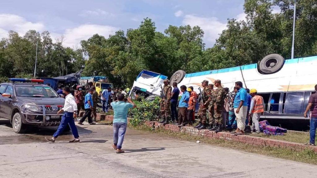 পুলিশ সুপার সরকার মোহাম্মদ কায়সার বলেন, উত্তরবঙ্গ থেকে ছেড়ে আসা একতা পরিবহনের একটি বাস ঢাকার দিকে যাচ্ছিল। টাঙ্গাইলের দিক থেকে আসা একটি মাইক্রোবাস ঘটনাস্থলে পৌঁছায়। এরপর বাসটি নিয়ন্ত্রণ হারিয়ে আইল্যান্ড ভেঙে মাইক্রোবাসটিকে মুখোমুখি ধাক্কা দেয়। এতে বাস ও মাইক্রোবাসের সামনের অংশ দুমড়ে মুচড়ে যায়। ঘটনাস্থলেই তিনজনের মৃত্যু হয়। হাসপাতালে নেয়ার সময় গাড়িতে মারা যান দুজন। এরপর হাসপাতালে নেয়ার পর মারা যান আরও একজন।