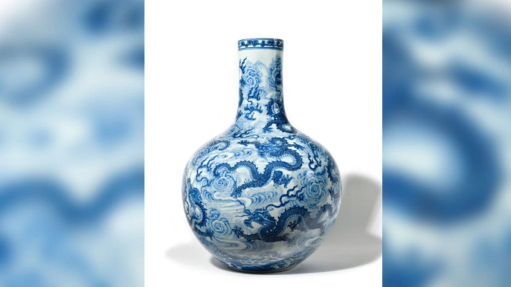 নিলাম সংস্থা ‘ওজেনাট অকশন হাউস’ নীল-সাদা রঙের ফুলদানিটি ফ্রান্সে নিলামে তোলে। প্রতিষ্ঠানটির পক্ষ থেকে বলা হয়, নিজের দাদির কাছ থেকে ফুলদানিটি পেয়েছিলেন এক ব্যক্তি। তার দাদির কাছে ফুলদানিটি ৩০ বছর ছিল।