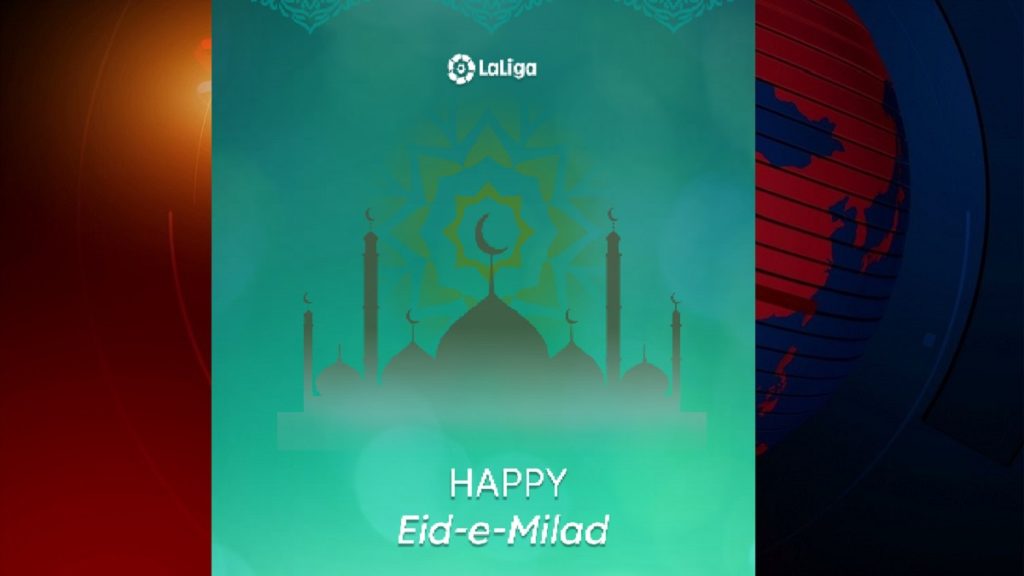 ঈদে মিলাদুন্নবী উপলক্ষে নিজেদের অফিশিয়াল ফেসবুক পেজ থেকে সবাইকে শুভেচ্ছা জানিয়েছে লা লিগা কর্তৃপক্ষ। শনিবার (৮ অক্টোবর) নিজেদের পেজ থেকে এই শুভেচ্ছা জানায় তারা।