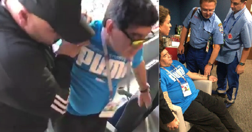 অবশ্য প্রথমার্ধের পর তাকে আর দেখা যায়নি। অসুস্থ বোধ করলে তিনি নাকি ভিআইপি গ্যালারি থেকে ঘুমোতে যান। তাকে আবার দেখা যায় ম্যাচের ৮৬ মিনিটে। রোহোর গোলের পর অন্য পোশাকে। স্বভাব-সুলভ উত্তেজনা আর উচ্ছ্বাসে। তবে ম্যাচ শেষে হাসপাতালে ভর্তি হতে হয় তাকে। তবে ম্যারাদোনা জানান তিনি এখন সুস্থ আছেন।