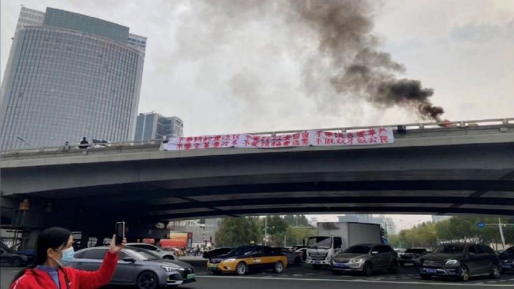 কোভিড নীতি শিথিলের দাবিতে বিক্ষোভ হয়েছে চীনে। বৃহস্পতিবার (১৩ অক্টোবর) রাজধানী বেইজিংয়ের বেশ কিছু স্থানে হওয়া বিক্ষোভে অংশ নেন আন্দোলনকারীরা।