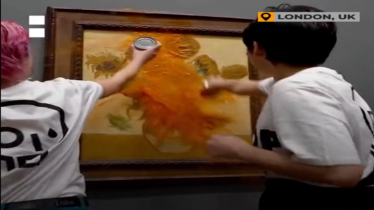 বিশ্বখ্যাত চিত্রশিল্পী ভ্যানগগের আলোচিত চিত্রকর্ম সানফ্লাওয়ারের ওপর স্যুপ ছুড়ে প্রতিবাদ জানিয়েছেন দুই পরিবেশ কর্মী। লন্ডনে স্থানীয় সময় শুক্রবার (১৪ অক্টোবর) এ ঘটনা ঘটে। খবর আল জাজিরার।