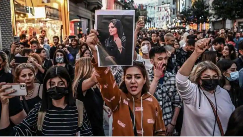 যেখানে দেখা যায়, তেহরানের আর্জেন্টিনা স্কয়ারে এক নারীকে ঘিরে রয়েছেন একদল পুলিশ। তার গলা চেপে ধরে জোর করে নিয়ে যাওয়া হয় বাইকে বসা কর্মকর্তাদের মাঝে। সেসময় শারীরিকভাবে লাঞ্ছিত করা হয় তাকে। পড়ে গেলে ঘিরে ধরেন পুলিশ সদস্যরা। ঘটনাস্থলে থাকা যান চালকেরা একসাথে হর্ন বাজাতে শুরু করেন, যা চলমান বিক্ষোভে প্রতিবাদের ভাষা হিসেবে ব্যবহার করা হচ্ছে। এক পর্যায়ে উঠে দাঁড়িয়ে দৌঁড়ে পালিয়ে যান আক্রান্ত নারী।