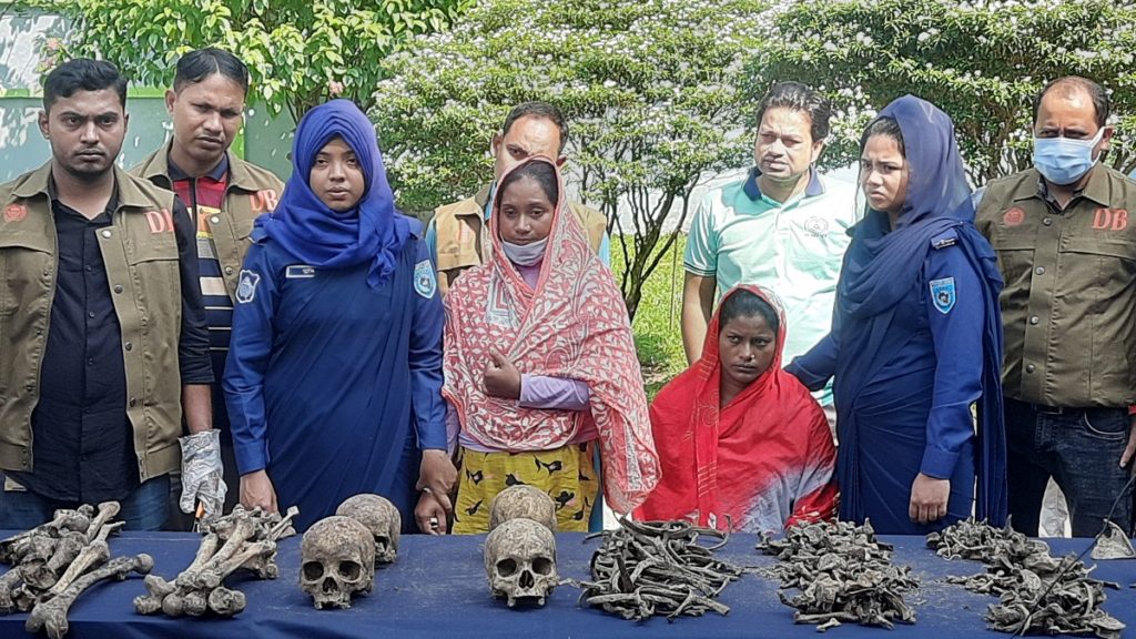 এ সময় কঙ্কাল চুরির মূল হোতা রিয়াজুল ইসলাম (৫০) ও রাজু ওরফে মেজাক (৪০) পালিয়ে যান। তবে রিয়াজুল ইসলামের স্ত্রী কমলা বানু পুতুল (৩৮) ও রাজুর স্ত্রী নাসিমাকে (২৫) গ্রেফতার করেছে পুলিশ।