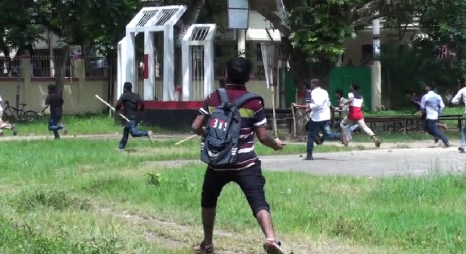 পুলিশ জানায়, একাদশ শ্রেণিতে ভর্তি নিয়ে ছাত্রলীগের দুই কর্মীর কথাকাটাকাটি হয়। এরই জের ধরে সংঘর্ষে জড়িয়ে পড়ে দু’পক্ষের সমর্থকরা। বেলা দেড়টা থেকে একঘন্টা দফায় দফায় চলে, ধাওয়া পাল্টা ধাওয়া। হয় ব্যাপক ভাঙচুর।
