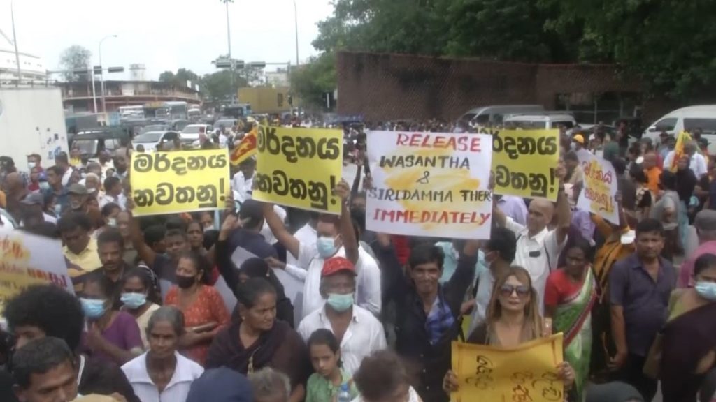আন্দোলনকারী বন্দিদের মুক্তির দাবিতে ব্যাপক বিক্ষোভ হয়েছে শ্রীলঙ্কায়। গতকাল বুধবার (২ নভেম্বর) রাজধানী কলম্বোয় রাজপথে নামে হাজারও মানুষ। খবর এপির।
