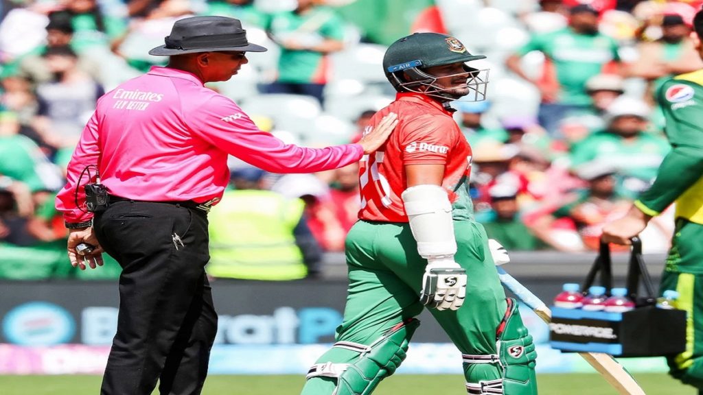 পরে ক্রিজে আসেন অধিনায়ক সাকিব আল হাসান। কিন্তু বিতর্কিত এক এলডাব্লিউ’র ফাঁদে পড়ে শূন্য রানে বিদায় নেন তিনি। এক ওভারেই জোড়া আঘাত হানেন শাদাব খান।
