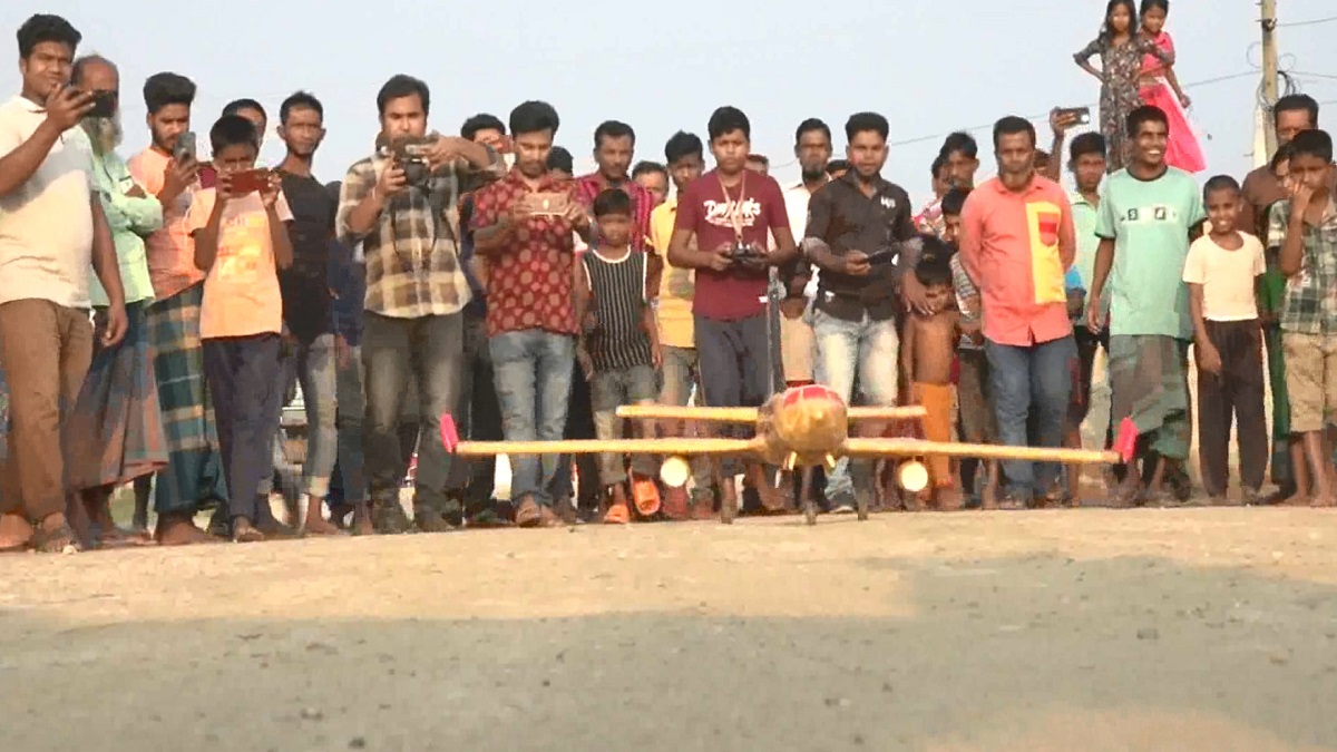 ব্রাহ্মণবাড়িয়ায় ক্ষুদে বিজ্ঞানী রবিউলের তৈরি চালকবিহীন বিমান দেখতে ভিড়।
