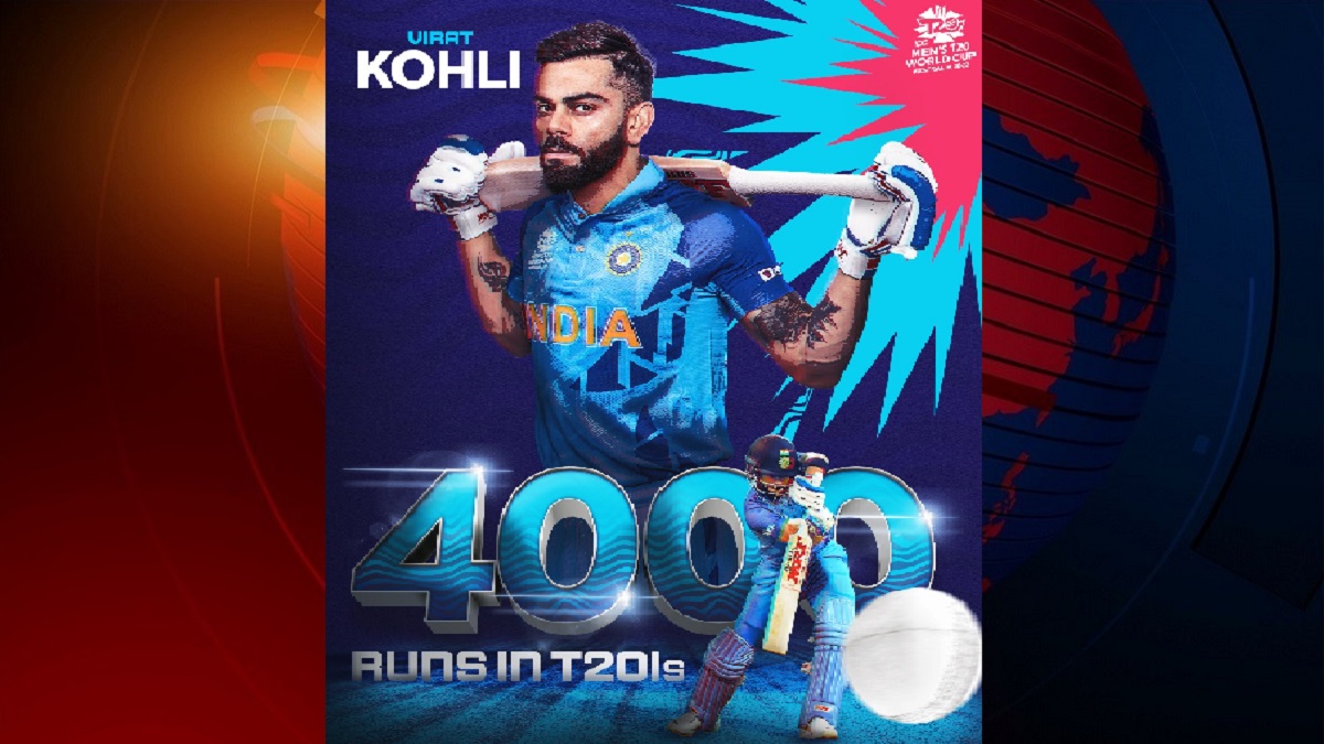 ১০৭ ইনিংস খেলে প্রথম ব্যাটসম্যান হিসেবে ২০ ওভারের ক্রিকেটে চার হাজার রান করলেন কোহলি। এর আগে সুপার টুয়েলভে পাকিস্তান, নেদারল্যান্ডস ও বাংলাদেশের বিপক্ষে হাফ সেঞ্চুরি করেন ভিরাট। ৬ ম্যাচ ২৯৪ রান করে সর্বোচ্চ রান সংগ্রাহকও এই ব্যাটার।