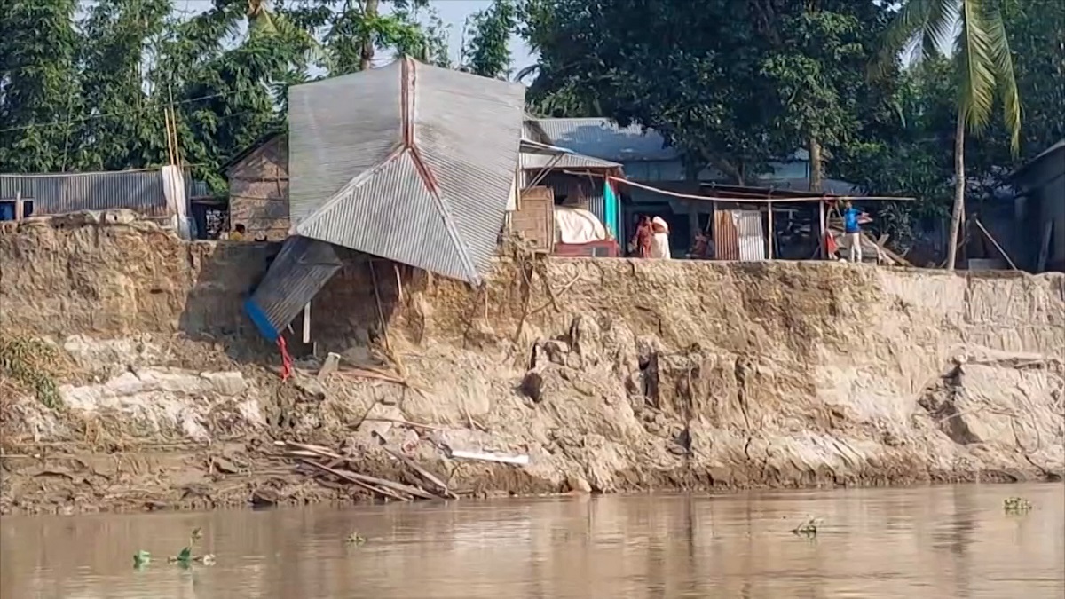 স্থানীয়রা জানান, নদীর মাঝামাঝিতে চর জেগে ওঠায় পানি প্রবাহ বাধাগ্রস্ত হয়ে ভাঙন আরও তীব্র হয়েছে।
