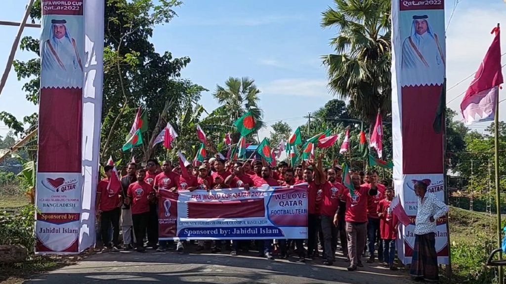 এরই অংশ হিসেবে চাঁদপুরের শাহরাস্তিরে প্রায় ৫০০ ফুট দীর্ঘ পতাকা নিয়ে বর্ণাঢ্য শোভাযাত্রা ও আলোচনা সভার আয়োজন করেছে কাতার সমর্থকরা।