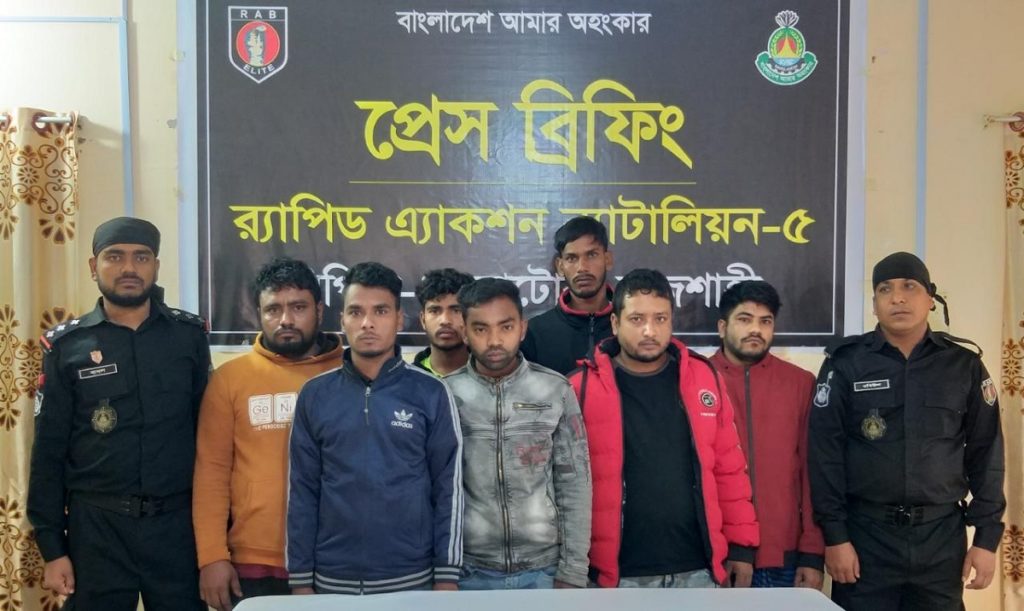 গ্রেফতারকৃতরা হলো, রাজশাহী বাঘা উপজেলার খানপুর গ্রামের বেলাল মন্ডল, নাটোরের লালপুরের মোহরকয়া গ্রামের মেহেদী হাসান, মোহন সরকার, মো. রবি, মনিহারপুরের শিমুল আলী, ভাঙ্গাপাড়ার শাহ পরান সরকার ও নাগসোসা গ্রামের রুবেল মন্ডল