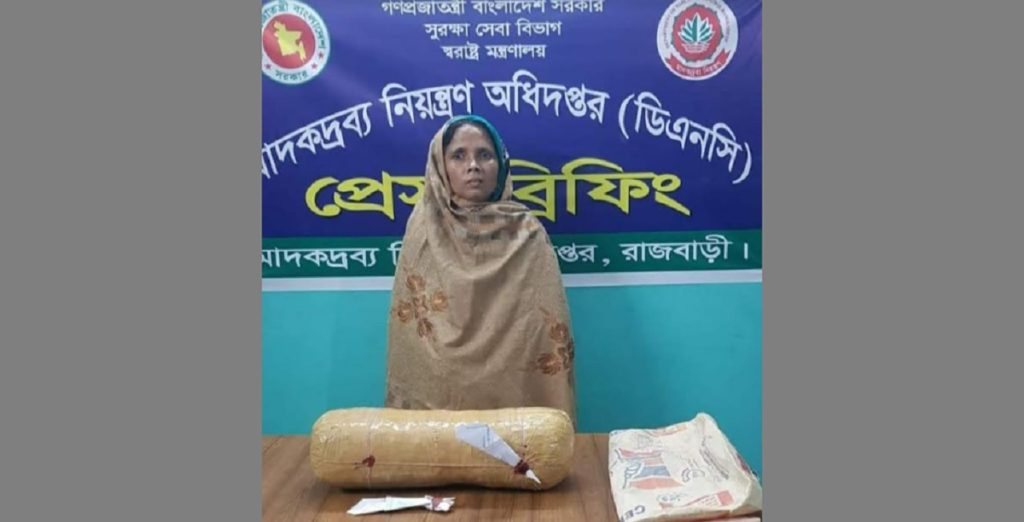 রাজবাড়ী সদর উপজেলার খানখানাপুর থেকে ৪ কেজি গাঁজাসহ রাশিদা আক্তার (৪০) নামে এক নারী মাদক ব্যবসায়ীকে গ্রেফতার করেছে মাদকদ্রব্য নিয়ন্ত্রণ অধিদফতর।