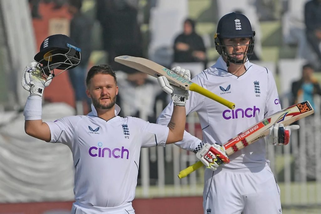 বেন ডাকেট ১১০ বলে ১০৭ ও জ্যাক ক্রলি ১১১ বলে ১২২ রান করে আউট হন। এরপর তিনে নেমে ওলি পোপ ১০৪ বলে ১০৮ রানে আউট হন। পাঁচে নেমে হ্যারি ব্রুকও ৮১ বলে সেঞ্চুরি করেন।