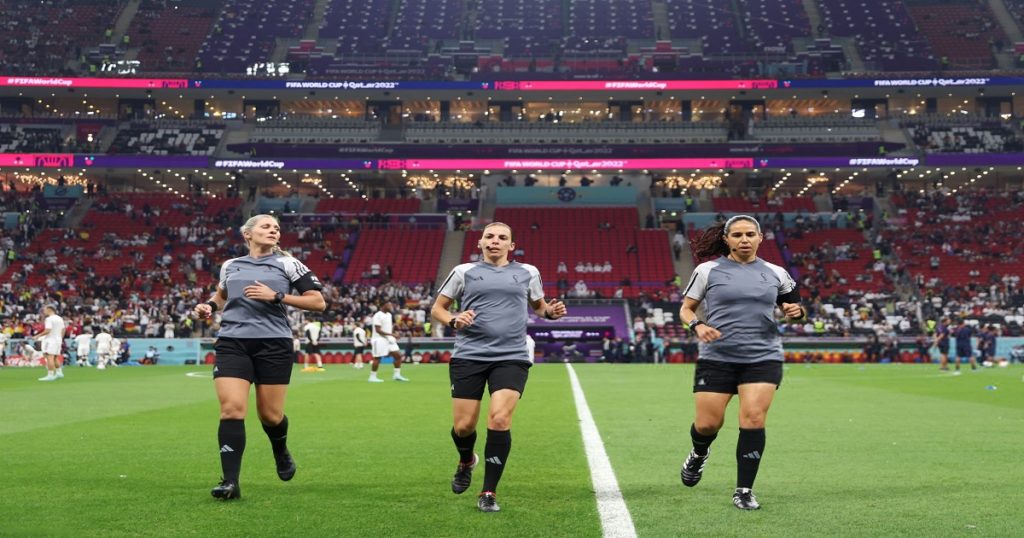 কাতার বিশ্বকাপে এবার ভেঙে গেলো ৯২ বছরের ইতিহাস। পুরুষদের ফুটবলে নারী রেফারির উপস্থিতি নতুন না হলেও বিশ্বকাপ ফুটবলে নারী রেফারির অংশগ্রহণ এবারই প্রথম। প্রথমবারের মতো ফিফা ফুটবল বিশ্বকাপে ম্যাচ পরিচালনা করছেন নারী রেফারি। জার্মানি-কোস্টারিকার ম্যাচ দিয়ে ইতিহাসের পাতায় জায়গা করে নিলেন ৩ নারী রেফারি।