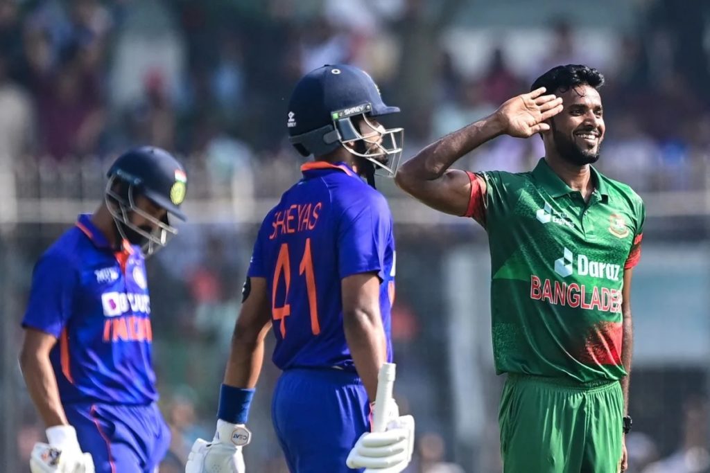 মাত্র ৪৯ রানের মাথায় ভারতের প্রথম তিন ব্যাটার আউট হওয়ার পর কে এল রাহুল ও শ্রেয়াস আইয়ার কিছুটা টেনে দেন দলীয় স্কোর। ৯২ রানের মাথায় এবাদতের শিকারে পরিণত হয়ে আইয়ারও ফিরে যান ৩৯ বলে ২৪ রান করে। ওয়াশিংটন সুন্দর এসে কিছুটা সঙ্গ দেন রাহুলকে। কিন্তু বেশি দূর যেতে পারেননি তিনিও। ব্যক্তিগত ১৯ রানে এবাদতের তালুবন্দি হন সাকিবের বলে। এরপর শাহবাজ আহমেদ, শারদুল ঠাকুর ও দীপক চাহার দাঁড়াতেই পারেননি। এরপর কে এল রাহুল এবাদতের বলে ক্যাচ তুলে দেন। সাজঘরে ফেরার আগে করেন ৭০ বলে দলীয় সর্বোচ্চ ৭৩ রান। পরে ৯ রান করে মোহাম্মদ সিরাজ আউট হলে ৪১.২ ওভারে ভারতের ইনিংস থামে ১৮৬ রানে।