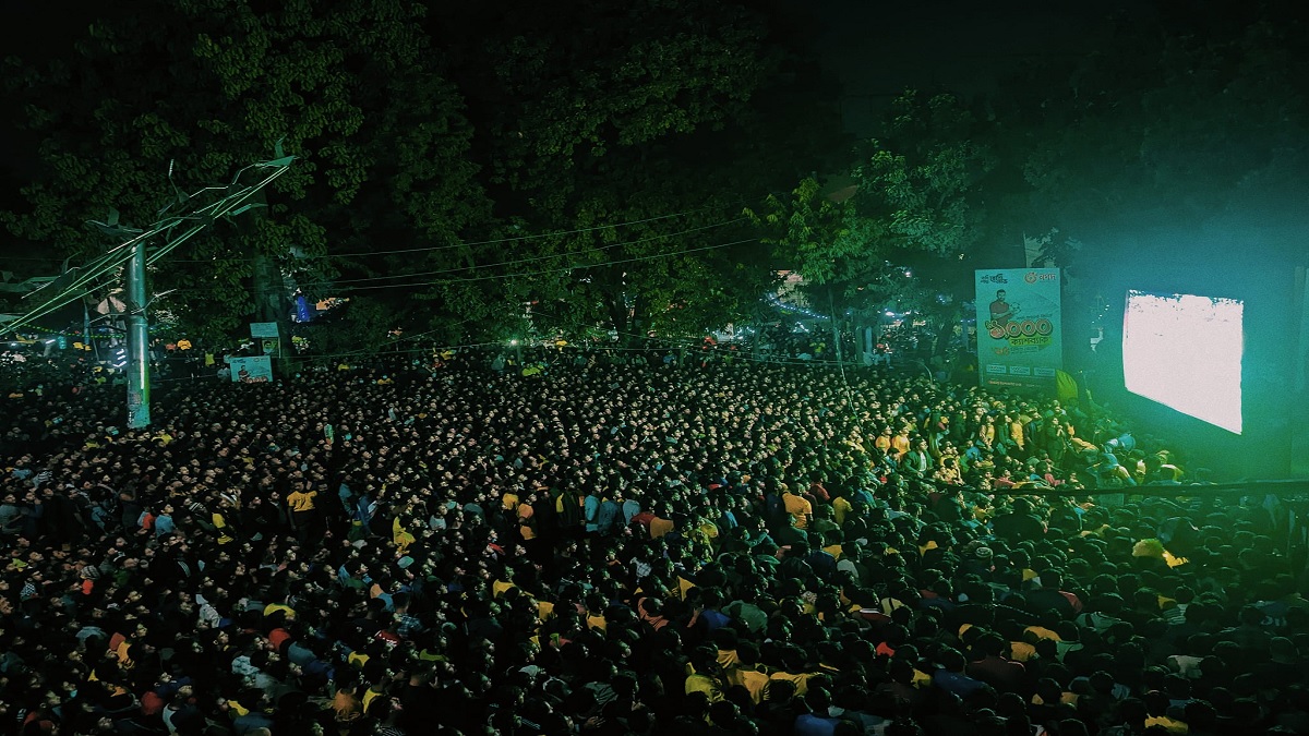 টিএসসিতে বিশ্বকাপের খেলা উপভোগ করছেন ক্রীড়াপ্রেমীরা।