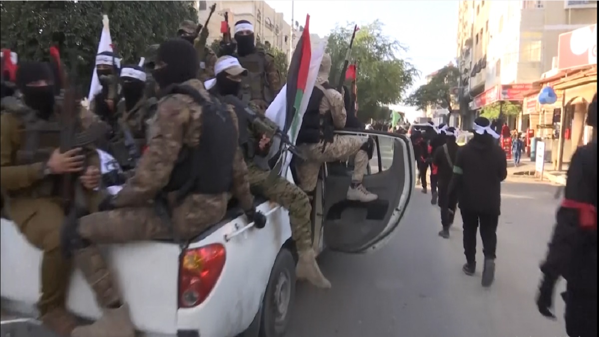 ৩৫তম প্রতিষ্ঠাবার্ষিকীকে সামনে রেখে অবরুদ্ধ গাজায় সামরিক শক্তিমত্তা দেখালো হামাস। অস্ত্র হাতে শহর প্রদক্ষিণ করে সংগঠনটির সামরিক শাখার সদস্যরা। খবর এপির।