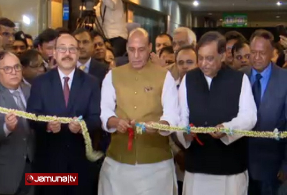 এসময় ভারতের হাইকমিশনার হর্ষবর্ধন শ্রিংলা, যমুনা গ্রুপের চেয়ারম্যান নুরুল ইসলামসহ রাজনাথ সিংয়ের সফরসঙ্গীরা উপস্থিত ছিলেন। উদ্বোধনের পর একজন বাংলাদেশির হাতে প্রতীকী ভিসা তুলে দেন রাজনাথ সিং।