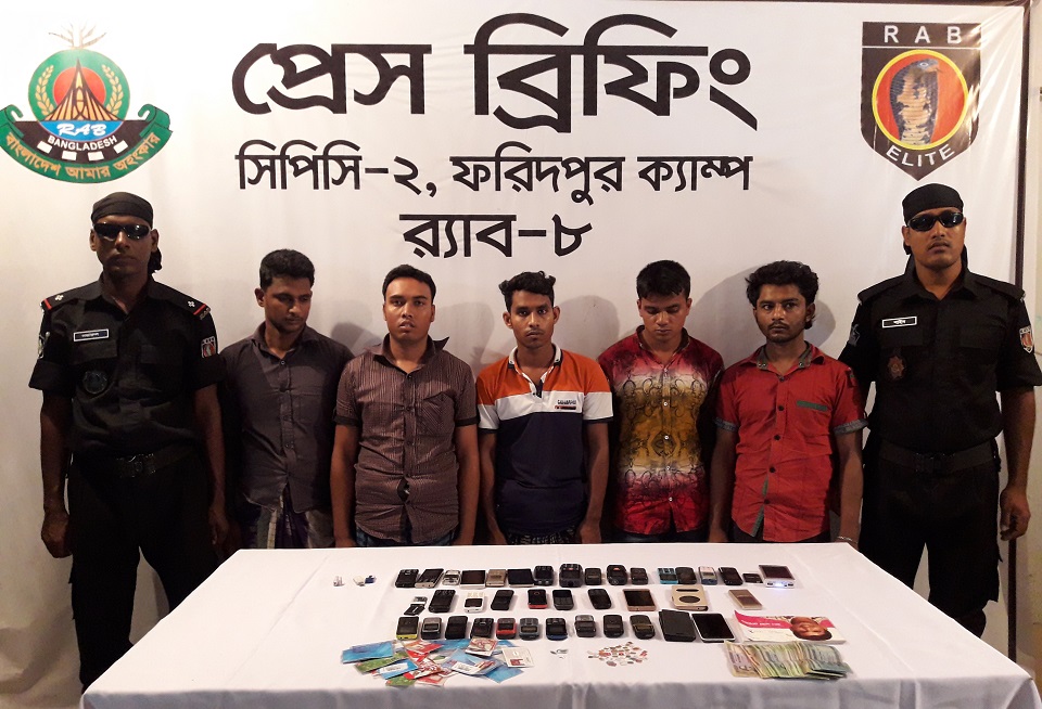 র্যাব ৮ ফরিদপুর সিপিসি ২ এর অধিনায়ক মো. রইছ উদ্দিন জানান, আজ রবিবার সকাল থেকে দুপুর পর্যন্ত ফরিদপুরের ভাঙ্গা উপজেলার বিভিন্ন এলাকা থেকে এই ৫ প্রতারককে আটক করে র্যাব সদস্যরা।