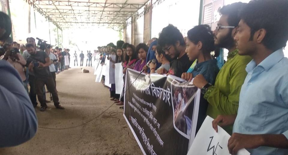 আজ সোমবার দুপুরে সমাজ বিজ্ঞান অনুষদের সামনে এই মানববন্ধন করেন তারা। হামলার জন্য ছাত্রলীগকে দায়ী করে মানববন্ধনে অংশগ্রহণকারীরা বলেন, হামলার পর প্রক্টরসহ বিশ্ববিদ্যালয় প্রশাসনের ব্যবস্থা যথাযথ ছিলনা।