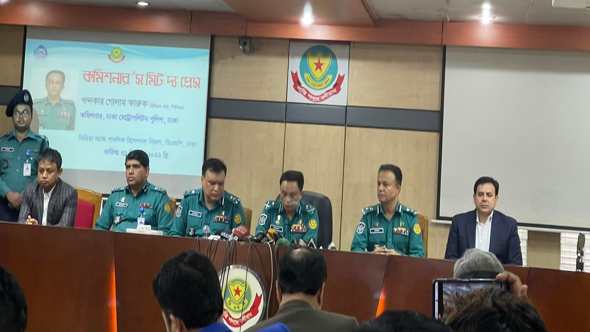 ডিএমপি মিডিয়া সেন্টারে আয়োজিত সংবাদ সম্মেলনে কথা বলছেন ডিএমপি কমিশনার খন্দকার গোলাম ফারুক।