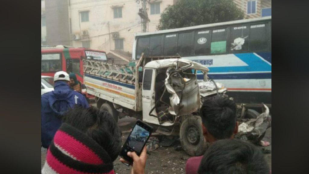 রোববার (১ জানুয়ারি) সকাল সাড়ে ৭টায় ঢাকা-সিলেট মহাসড়কের নরসিংদী সদর উপজেলার মাধবদীর ভগীরথপুরে এ দুর্ঘটনা ঘটে। নিহতের লাশ উদ্ধার করে ময়নাতদন্তের জন্য নরসিংদী সদর হাসপাতালের মর্গে পাঠানো হয়েছে বলে নিশ্চিত করেছে পুলিশ। নিহত পিকআপ চালক কিশোরগঞ্জের বালিয়া থানার করিমগঞ্জের আবদুল জব্বারের ছেলে।
