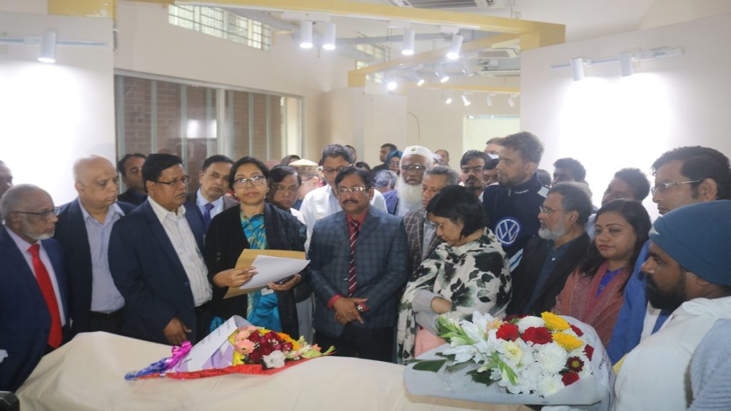 মরণোত্তর দেহদানে দেশের মানুষকে উদ্বুদ্ধ করে প্রয়াতের একমাত্র ছেলে সাইদ হোসেন তমাল মরদেহকে শ্রদ্ধা জানানোর জন্য সকলকে এক মিনিট করতালি প্রদান করার অনুরোধ জানান। পরে ফুল দিয়ে শ্রদ্ধা জানানো হয়। এ সময় তার মরদেহটি বিএসএমএমইউ’র এনাটমি বিভাগে সংরক্ষণ, শিক্ষণ-প্রশিক্ষণ ও গবেষণার কাজে ব্যবহারের অনুমতিপত্রটি বিভাগীয় চেয়ারম্যানের নিকট প্রদান করা হয়।