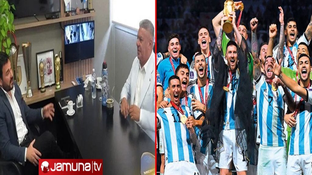 মঙ্গলবার (৩ জানুয়ারি) আর্জেন্টিনায় বাংলাদেশের অনারারি কনসাল লিয়ান্দ্রো গাবারদির সাথে আলোচনা বসেছিলেন এএফএ প্রেসিডেন্ট ক্লদিও তাপিয়া। গাবারদির মাধ্যমে আর্জেন্টিনা দলের পক্ষ থেকে বাংলাদেশ সমর্থকদের ধন্যবাদ জানান তিনি। এছাড়াও বাংলাদেশের সাথে ক্রীড়াক্ষেত্রে আর্জেন্টিনার সম্পর্ক বাড়ানোর আলোচনাও হয় সেখানে। বাফুফে সভাপতি কাজী সালাউদ্দিন যে বাংলাদেশে মেসিদের আনতে আগ্রহী সেটিও জানিয়ে দেন গাবারদি। তাদের মধ্যে আলোচনার বিষয়বস্তু নিয়ে এক বিবৃতিও প্রকাশ করেছে এএফএ।