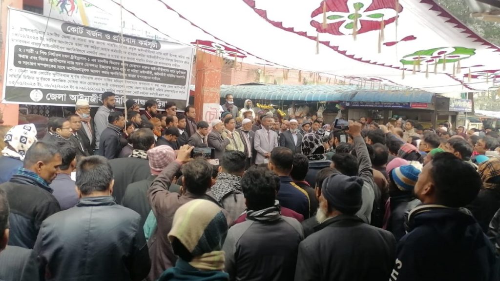 এদিকে গত কয়েকদিন ধরে উত্তপ্ত ব্রাহ্মণবাড়িয়ার আদালতপাড়া। বুধবার (৪ জানুয়ারি) আইনজীবীদের বিরুদ্ধে বিভিন্ন অভিযোগ এনে কর্মবিরতিতে যায় ব্রাহ্মণবাড়িয়া বিচার বিভাগ কর্মচারী এসোসিয়েশন। পরে বিক্ষোভ মিছিল করে জেলা আইনজীবী সমিতি। মিছিলে জেলা আইনজীবী সমিতি জেলা জজের অপসারণ দাবি করেন। আইনজীবীদের বিক্ষোভ মিছিলের পরপরই আইনজীবী সহকারী সমিতি আদালতের বেঞ্চ সহকারী-পেশকারদের বিরুদ্ধে ঘুষের অভিযোগ এনে বিক্ষোভ করেন। তারা আইনজীবীদের দাবির সাথে একাত্মতা ঘোষণা করেন।