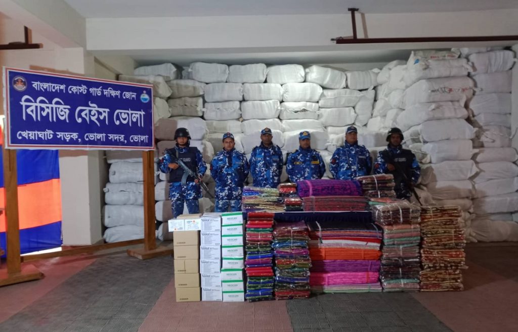 তিনি বলেন, গোপন সংবাদের ভিত্তিতে ভোলার সদর উপজেলার তুলাতুলি সংলগ্ন মেঘনা নদীতে গত ৩ জানুয়ারি সোমবার ভোরের দিকে সন্দেহজনকভাবে এফ.বি আবিদ নামে একটি ফিশিংবোর্ড থামার সংকেত দেয়া হলে বোর্ডটি না থেমে দ্রুত পালিয়ে যাওয়া চেষ্টা করে। পরে কোস্টগার্ড বোর্ডটিকে গতিরোধ করার জন্য ৪ রাউন্ড ফাঁকা গুলি করলে জড়িতরা বোর্ডটিকে চরে ফেলে রেখে পালিয়ে যায়। এরপর বোর্ডটিতে তল্লাশি চালিয়ে ওই শাড়ি, থ্রি পিস ও মেডিকেল আইটেম জব্দ করা হয়।