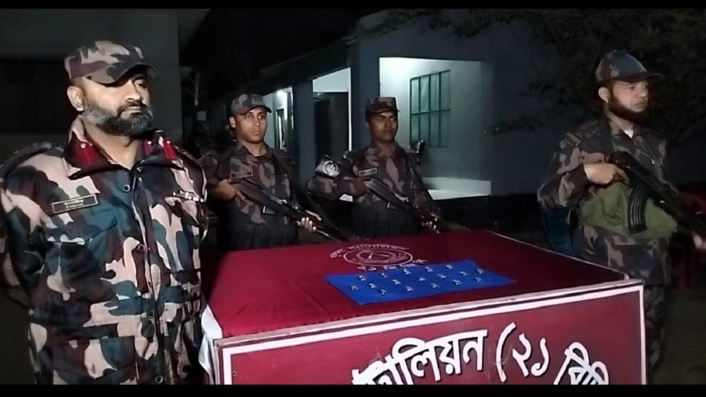 ২১ বিজিবি ব্যাটালিয়নের কমান্ডিং অফিসার লেফটেন্যান্ট কর্নেল তানভীর রহমান বলেন, শনিবার (৭ জানুয়ারি) দুপুরে শার্শা উপজেলার পাঁচ ভূলোট সীমান্ত দিয়ে বিপুল পরিমান স্বর্ণের বার পাচার হয়ে ভারতে যাচ্ছে এমন ধরনের খবর পেয়ে ভূলোট সীমান্তবর্তী বটতলা এলাকায় অভিযান চালিয়ে সন্দেহভাজন মোটরসাইকেল আরোহী দুই ব্যক্তিকে গতিরোধ করলে তারা দ্রুত দুটি কাগজের পোটলা ফেলে কৌশলে পালিয়ে যায়। ফেলে যাওয়া পোটলার ভেতর থেকে ১ কেজি ৯৮৩ গ্রাম ওজনের ১৭ পিস স্বর্ণের বার উদ্ধার করা হয়। যার বাজার মূল্য ১ কোটি ৫০ লাখ টাকা।